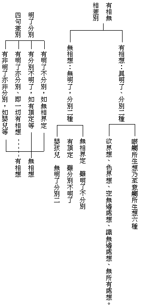 (4)想:谓于境取像为性,施设种种名言为业。取像印取所缘色等的青、非青、大、小等像状。施设就是安立,即由想取青非青等分齐界限的相状为因,安立为是青非青等名言果法。
