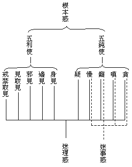 二、法执:一切法执,略有二种:一、俱生法执,二、分别法执。俱生法执的生起,不依赖外缘,是无始时来,由第六第七两识的虚妄熏习内因种子力故,恒常与有情五蕴身俱时生起。由于此执是不借待邪师和邪教及自己内心邪分别,任运自然地与身俱时生起,故名俱生。这又有两种:(一)常相续生起的俱生法执,此执在第七识中,依于第七识生起执用,缘虑第八识以为本质境,生起自心上的影像相分心相,执为实法。(二)有间断,此执在第六意识中,依第六意识生起执用,缘虑诸识所变的蕴处界总相或别相以为本质境,生起自识上的影像相分心相,执为实法。这两种法执,行相微细,故难断除,要在见道以后的十地位中,数数不断地修习殊胜的法空观,才能除灭。