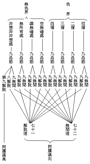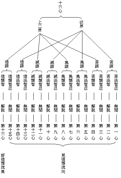 三、伏断位次:灭现行名伏,除种子及习气名断。断的意义,约能断说,是除害义;约所断说,是不续义;自类相生的种子后生的作用不相续,即是断惑。过去未来的法无体,故无所断;现在惑智俱起,亦无所断;但由教行因缘引起正见相应的能治心,此心生时,所治惑种即灭,智生惑灭同一刹那,犹如世间明生暗灭,断惑义成。烦恼所知的分别二障,资粮位渐伏,加行位顿伏。少分伏名渐伏,犹有余故;全分伏名顿伏,更无余故。资粮位伏其粗者,由胜解力折伏;加行位伏其细者,由四寻思四如实观制伏。因邪师邪教所引起的名粗,由自分别所引起的细。分别二障的种子与习气,俱初地断;即于真见道位中的无间道断除种子,解脱道断除习气。